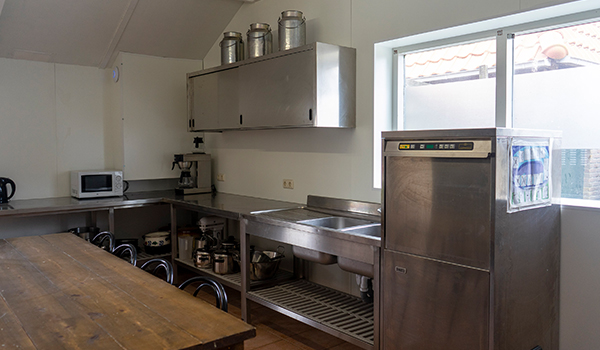 Die Gruppenunterkunft verfügt über eine geräumige Küche mit Backofen, Geschirrspüler, Sechs-Flammen-Gasherd und Mikrowelle.