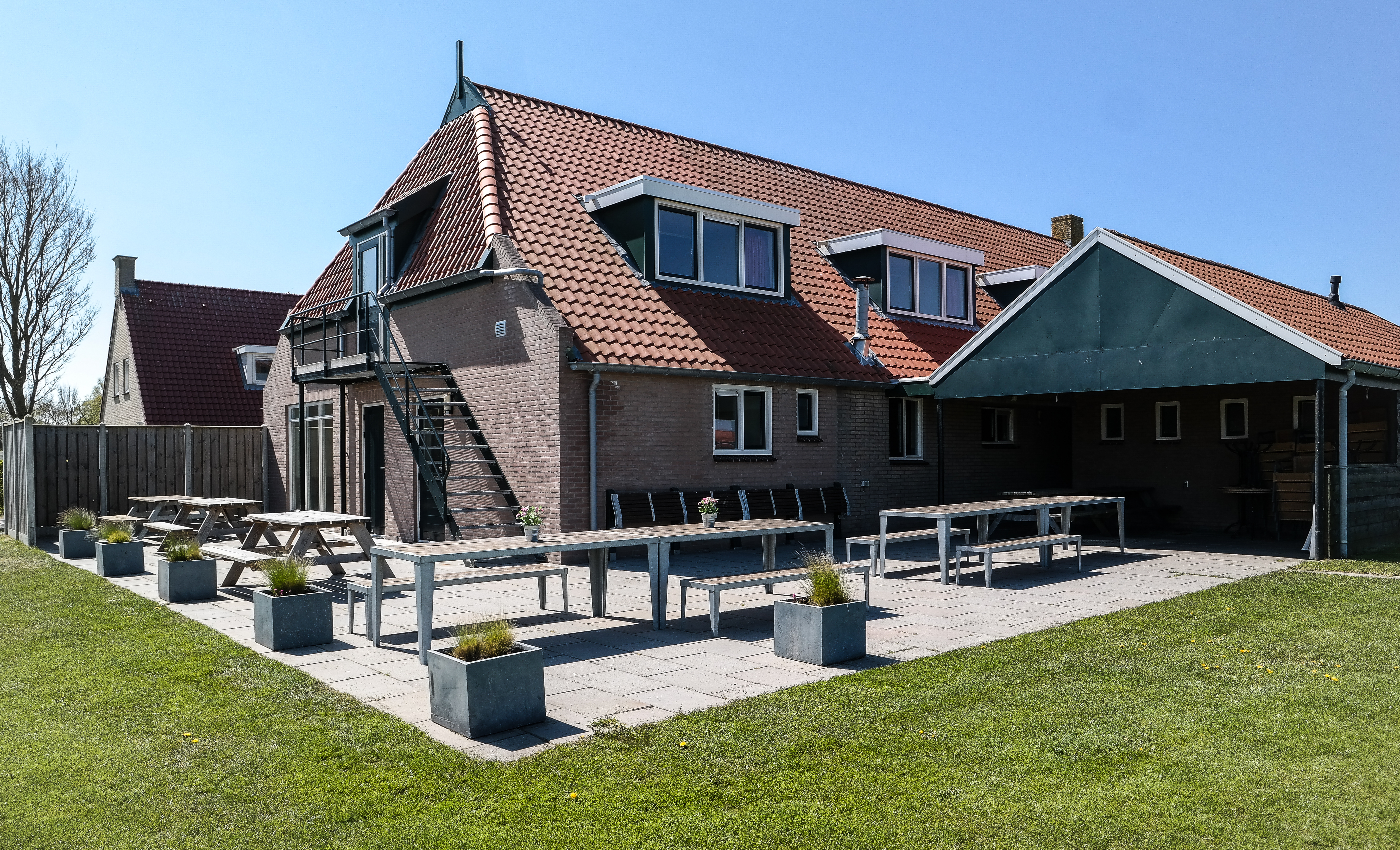 Het Arendsnest ist ein großes Ferienhaus in Buren auf Ameland und eignet sich für Gruppen von bis zu 80 Personen. Der Ess- und Aufenthaltsraum ist ansprechend im Strandstil mit Gerüstholz dekoriert. Die Unterkunft verfügt über ein großes Spielfeld mit Fußballtoren, Tischtennisplatte und Turnständern. Für gesellige Zusammenkünfte gibt es auch eine Feuerstelle. Das Arendsnest kann in zwei Ferienhäuser aufgeteilt werden. Bis zu 20 Personen „Het Voorhuis“ und bis zu 60 Personen „De Schuur“. Oder Sie nutzen das Ganze. Es ist immer sauber und mit allen modernen Annehmlichkeiten ausgestattet. Unsere Unterkünfte sind nicht für Senioren-Fußballmannschaften und Studentenvereinigungen geeignet. Het Arendsnest liegt am Rande von Buren, etwa 2 km vom weitläufigen Sandstrand und 1 km vom Weltkulturerbe Wattenmeer entfernt. In der Nähe von Nes mit gemütlichen Geschäften und Restaurants, dem Vleijen-Spielplatz, dem Schwimmbad, Museen sowie Rad- und Wandermöglichkeiten Routen durch Wälder und Dünen.